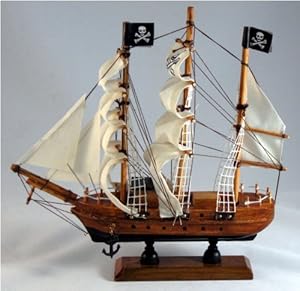 9 X 9 Mounted on a wood base 3 masts with a skull and cross bones on the middle sail New Comes fully assembled.
